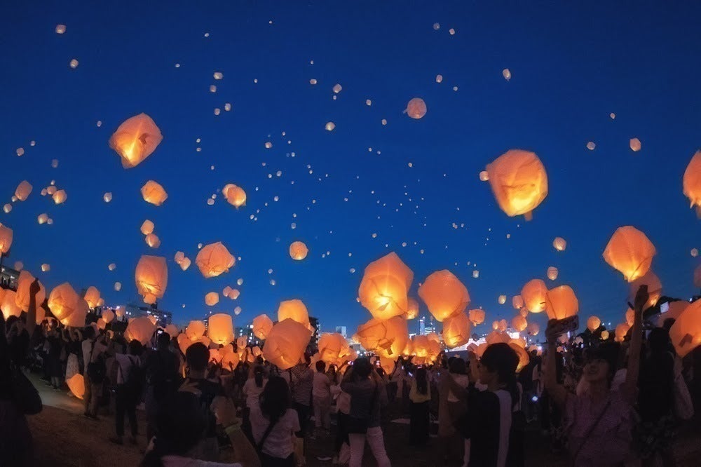 「願いを書いた短冊をランタンに張って一斉に空に飛ばす」お祭りです