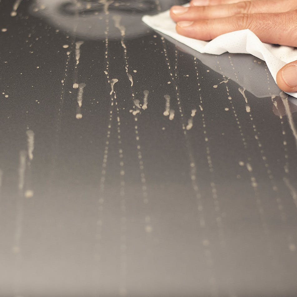 A :軽い汚れから中程度の汚れを素早く簡単に落とすのに最適なウエットティッシュです。表面を磨くと同時に保護します。表面に頑固な汚れや粗い汚れ(石、砂など粗粒子の汚れ)が付着している場合は、それを取り除く簡単な予洗いをオススメします。