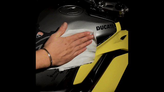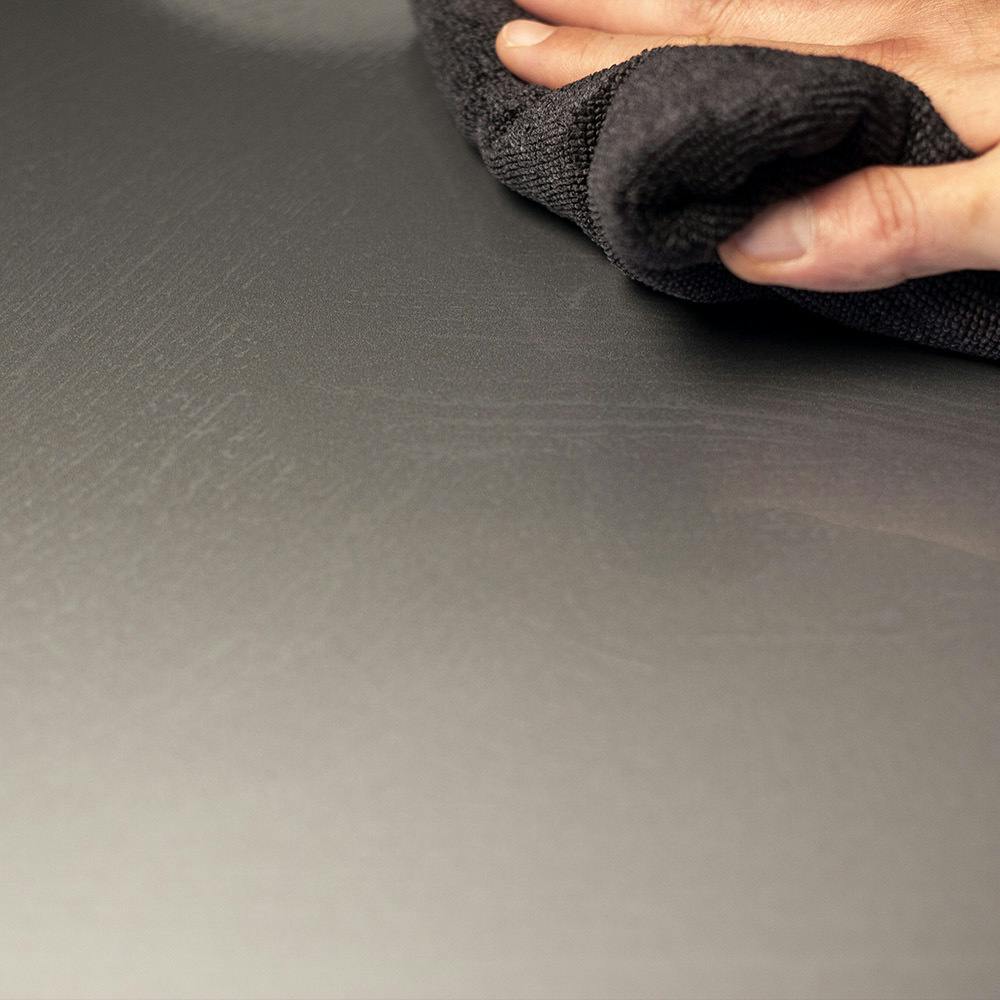 両面極細布のもう片方の面を使用して優しく仕上げます。