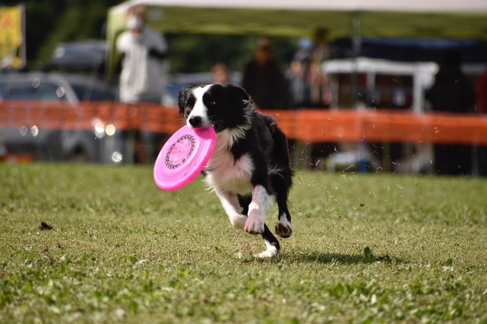 すぐにディスクドッグの競技会を数多く見学し、レベルの高いフリースタイルに圧倒されましたが、同時に早くこの舞台に立ちともに戦いたいとも思いました。