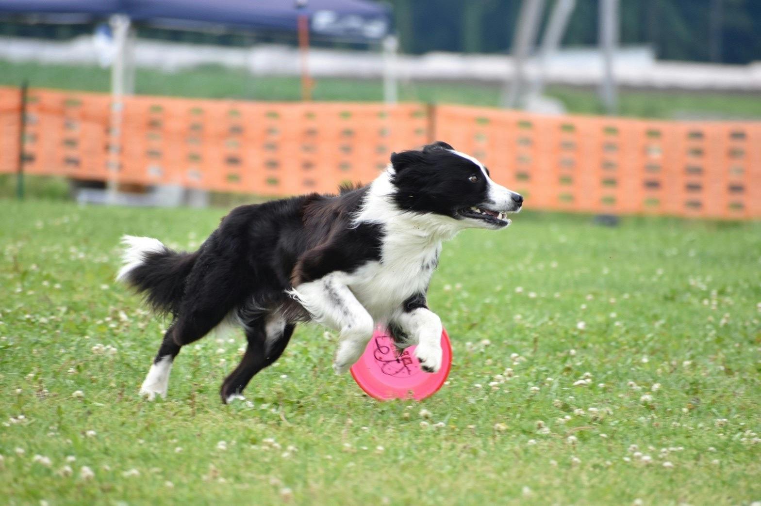 【※フリースタイルは、多種多様なトリックを、音楽に合わせて犬と一緒に行います。犬が人を跳び越えたり、人を台にしてジャンプキャッチするような技など犬の運動能力や動きの素晴らしさ、人と犬のチームワークを見せる種目です。競技は①犬の能力②人の能力③演技の構成④キャッチの成功率。以上4項目を各10点満点で採点し、これにディスタンス種目の点数を加算して競います。】