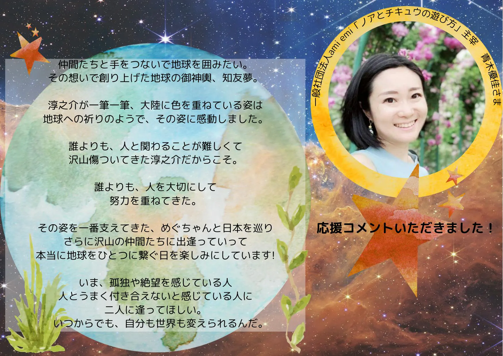 2024/06/04 21:58こんばんわっしょい!めぐちゃんです^ ^クラウドファンディングを通しての応援本当にありがとうございました!!無事にゴールし、今日は旅前に勉強のためにと読んでいた西野亮廣さんの本を読み返してみました。そこには誰よりもクラウドファンディングを活用してきた西野さん目線の意見がたくさん書かれてます!本を読んで実際にやってみてまた本を読むと腹落ち具合が違うように感じました( ・∇・)まだまだ浅いけど、『経験した』というのはやっぱり大きい気がします!昨日は京都最後の夜でしたが、応援いただいたリターンのお便りを全て出し終えました(^^)京都からのお手紙どうぞお楽しみに♪休みつつ東京に体を慣らしていきたいと思います!リターンの準備が整い次第お届けしていきますので、よろしくお願いいたします! もっと見る