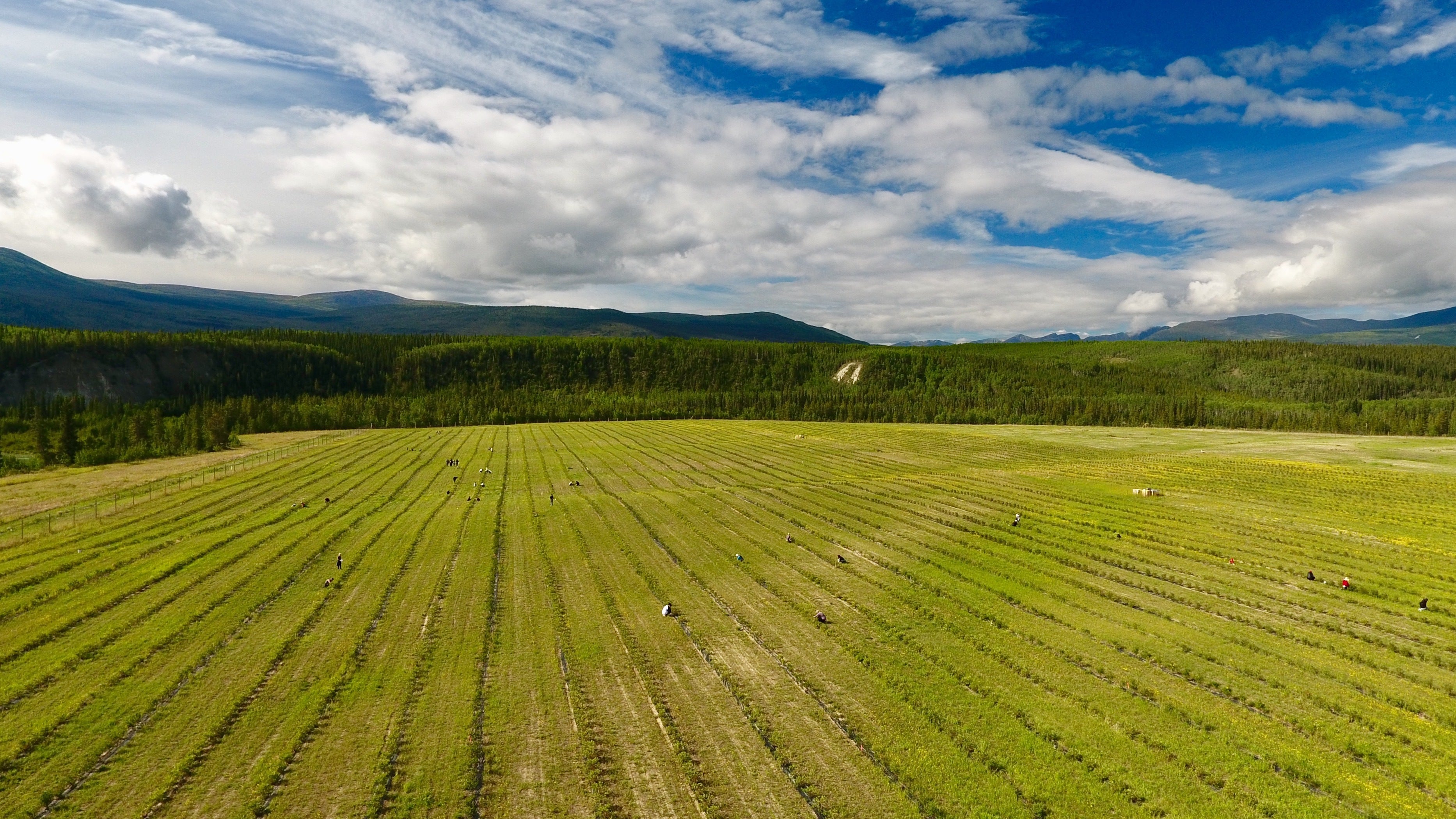 農場の大きさは、なんと東京ドーム約5個分。なんと北緯60度を超える位置にあるハスカップ農場です。合計2か所に広大な農場を持っており、全部で約5万株のハスカップベリーが栽培されています。冬になると農場の真上に、オーロラが見える、そんな大自然の中ハスカップが栽培されています。