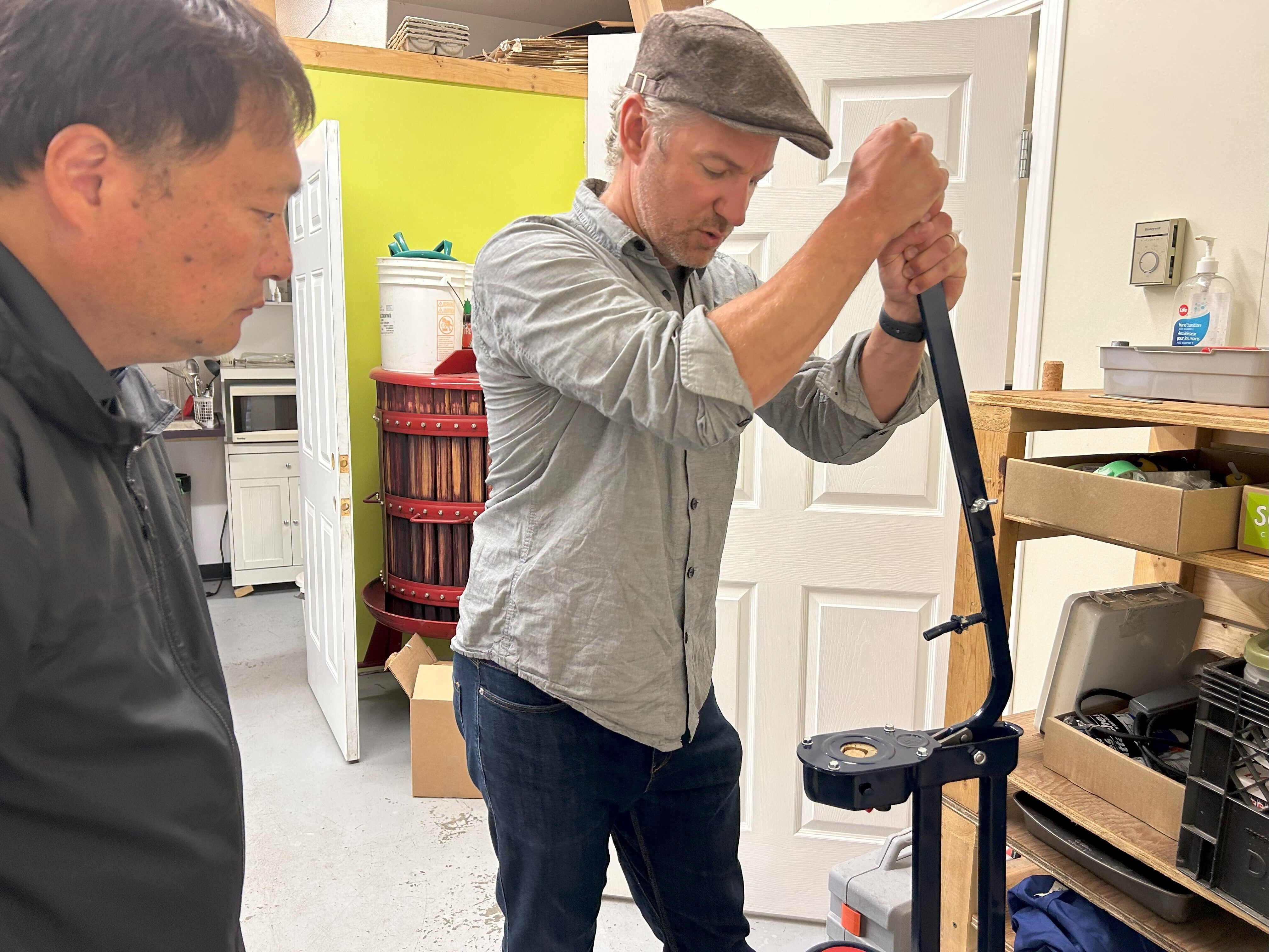 そして、コルクも下記の機械で丁寧に行います。機械も高価で、置くスペースも限られるので、オーナーのカイルさんもどうすれば効率良く製造していけるか日々奮闘しています。
