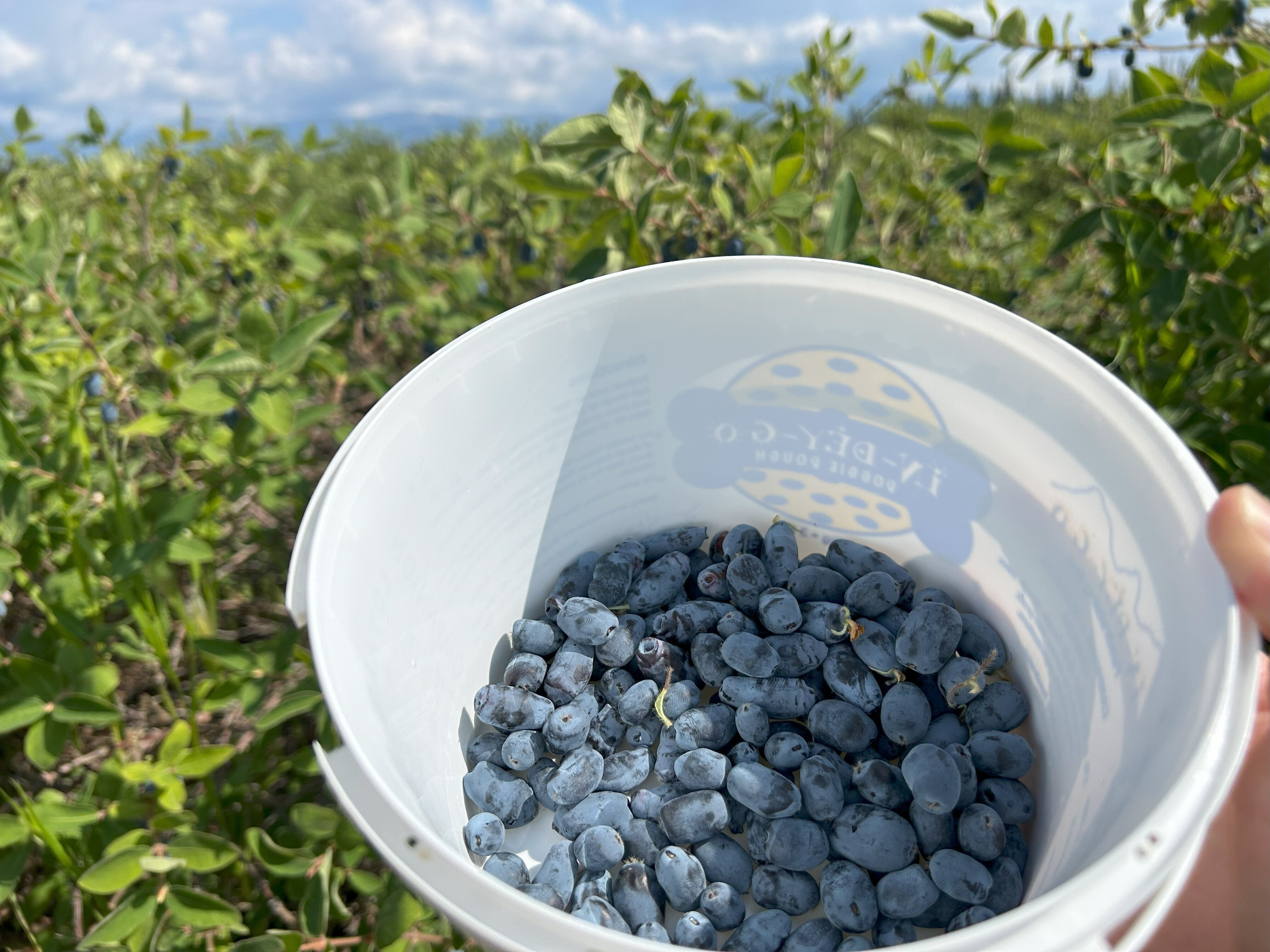 今回、特別に、ユーコンワインズの農場にお邪魔して収穫させてもらいました!!採れたてのハスカップは、想像していたより、酸っぱくなく、まろやかな甘みがありとても美味しかったです。潰れると、すぐに手が真っ赤になってしまいます。アントシアニンがたっぷり含まれている証拠ですね!