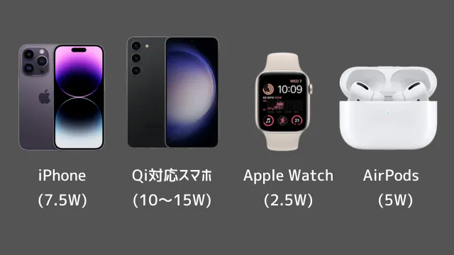 出力1:15W/10W/7.5W/5W(スマホ充電)