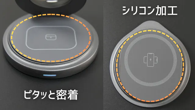 ピタッと吸着、デバイスが滑らない特殊シリコンマット。