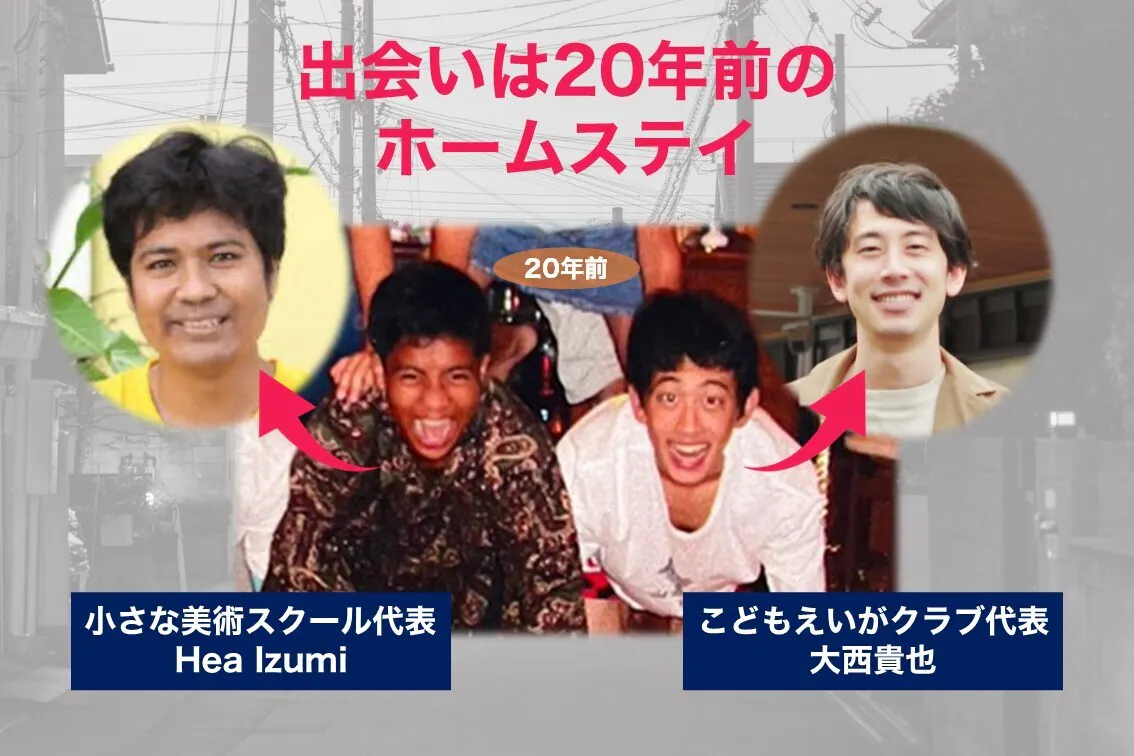 私(大西貴也)が高校2年生の時、Heaはホームステイで私の家にやってきました。正直、もう20年も前の事なので、何も覚えていません。ただ、夏の暑い時期で私がパンツ一丁で部屋にいたので、「日本人の男は家ではパンツしかはかない。」という間違った文化を持ち帰ったという事を後で聞かされました。少なくてもその時は、20年後にHeaが絵を書き、私が映画を撮っているなんて思いもしませんでした!