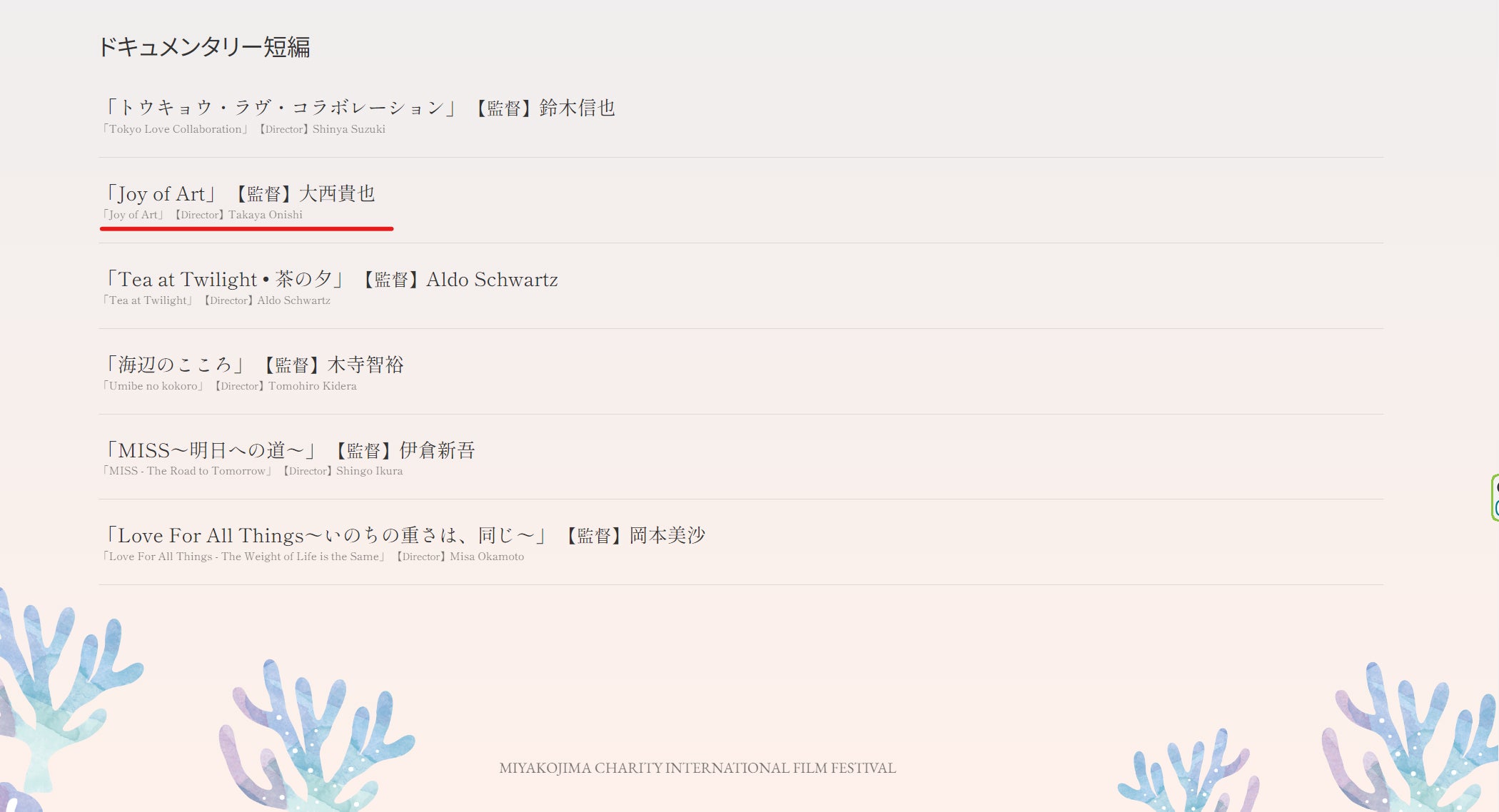 映画『Joy of Art』が宮古島チャリティ国際映画祭ノミネート作品として選出されました!!