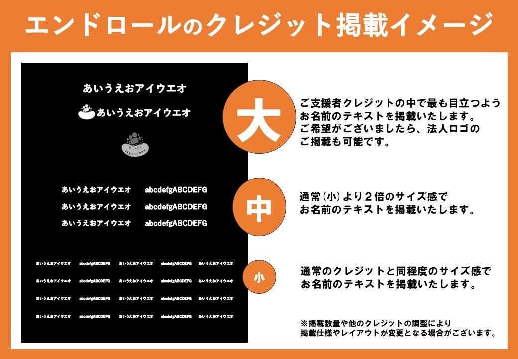 ※リターンによって、エンドロールの掲載サイズが異なりますので、ご注意下さい。