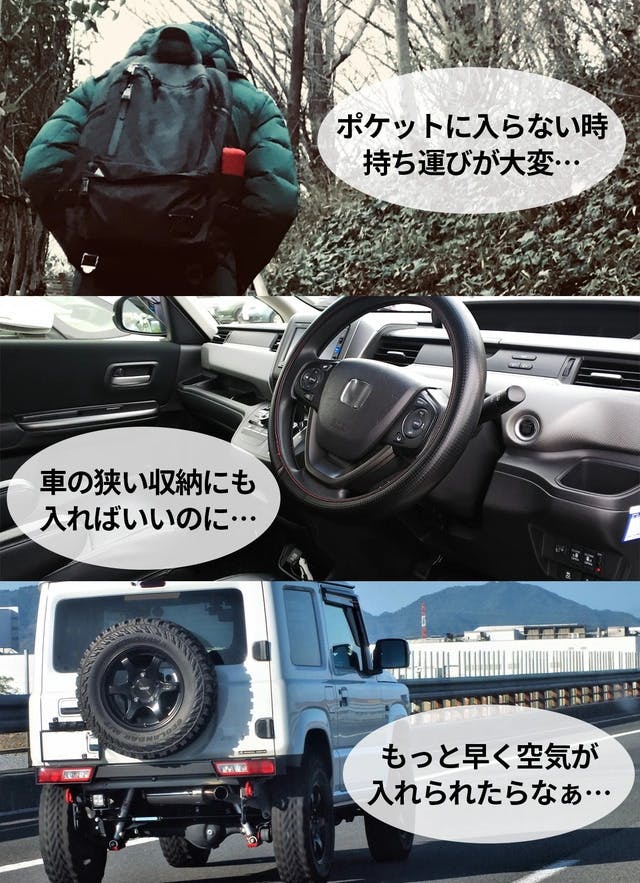 リュックのポケットや車のサイドポケットなどの狭い場所にも入るように、でも決して性能は落とすことのないように。