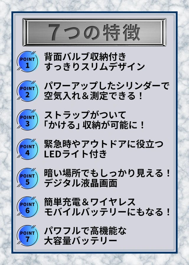 さらに色々なものへの空気入れ、空気圧測定から、お掃除やライトとしても使用可能な多機能設計!