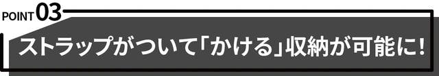 また、床に置けない状況や、地面が安定しない場面でも置き場所に困らない「かける」ストラップ付きで利用シーンが広がります。