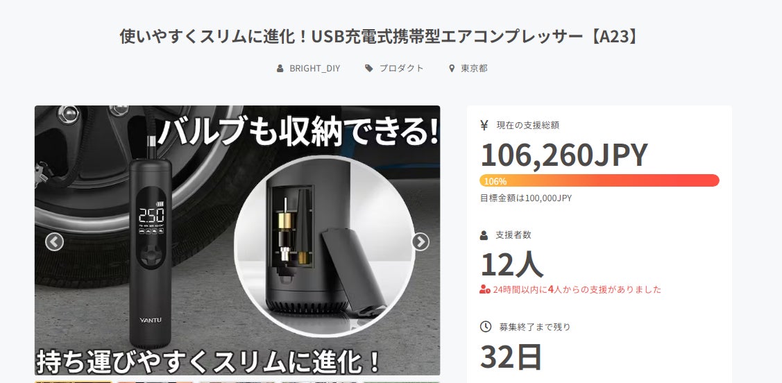 皆様、こんにちは!Bright DIYチームです。お世話になっております。今回は【A23】についてご紹介します!A23は、充電の手間を省き、さらにワイヤレスでモバイルバッテリーとしても使用できる優れた機能を備えたUSB充電式携帯型エアコンプレッサーです。まず、簡単な充電機能についてです。A23はUSB充電式なので、専用のケーブルやアダプタを持ち歩く必要はありません。一般的なUSBケーブルを使って、コンピューターやモバイル充電器などから簡単に充電できます。充電が簡単なので、いつでも必要な時にA23を使用することができます。さらに、A23はワイヤレスでモバイルバッテリーとしても機能します。大容量のバッテリーを備えており、他のデバイスの充電にも使用できます。スマートフォンやタブレットなどの充電が必要な場合、A23をワイヤレスで接続して便利に充電することができます。外出先やキャンプなどの長時間の使用にも対応し、常に電力不足になる心配はありません。また、A23のバッテリーはパワフルで高機能な大容量です。これにより、エアコンプレッサーのパフォーマンスを最大限に引き出すことができます。パワフルな圧力でタイヤを素早く充填するだけでなく、持続的な使用にも耐えます。長時間の作業や大量の空気充填作業にも対応し、効率的な作業を実現します。【A23】の簡単充電とワイヤレスモバイルバッテリー機能は、忙しい日常生活やアウトドアでの使用時に便利です。充電が簡単でワイヤレスなので、持ち運びや操作が煩雑になることはありません。また、大容量のバッテリーは長時間の使用にも耐えるため、連続した作業や複数のデバイスの充電にも十分な電力を供給します。さらに、A23のバッテリーは信頼性が高く、安定した充電パフォーマンスを提供します。A23の簡単充電とワイヤレスモバイルバッテリー機能は、日常生活だけでなく、アウトドア活動や非常時の備えにも役立ちます。キャンプや旅行先でスマートフォンやタブレットの充電が必要な場合、A23を使ってワイヤレスで充電することができます。また、非常時にはA23のバッテリーを予備電源として利用できます。停電や災害時においても、携帯電話や照明機器などの電力供給に頼ることができます。A23の簡単充電とワイヤレスモバイルバッテリー機能は、ユーザーに使い勝手の良さと便利さを提供します。充電の手間を減らし、ワイヤレスでの充電が可能なため、スマートな充電体験を実現します。さらに、大容量バッテリーのパワフルな性能は、長時間の使用や他のデバイスの充電にも対応します。【A23】の簡単充電とワイヤレスモバイルバッテリー機能は、ユーザーに便利さと柔軟性をもたらします。常に充電が必要なデバイスを持ち歩く現代において、A23は頼もしいパートナーとなるでしょう。以上、 Bright DIYチームでした!興味がある方、是非ご支援よろしくお願い致します。https://camp-fire.jp/projects/view/688189Brightチームは当プロジェクトをより多くの方へ知って頂きたいと考えております。よかったら、SNSでのシェア・拡散をお願い致します。#bright_diyどうぞよろしくお願い致します。Brightチーム