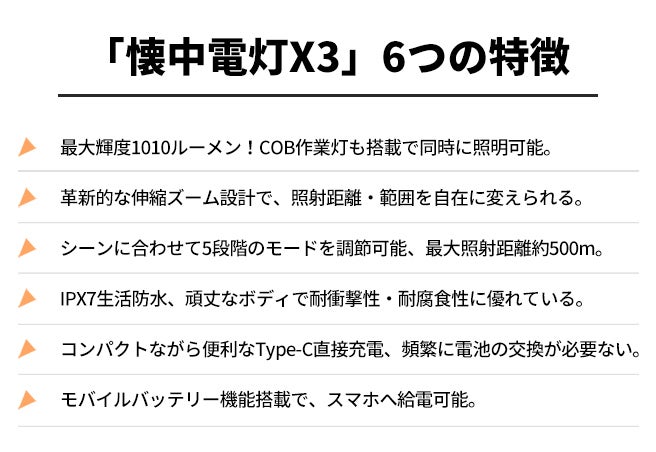 日常使いだけでなく、夜釣り、キャンプ、登山、警備の見回り、災害対策などなど様々な場面でも活躍です!小型ながら実用性高い!
