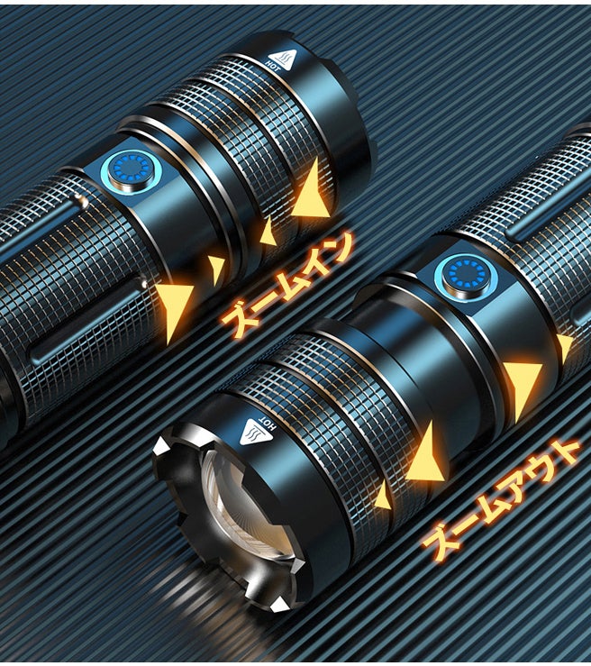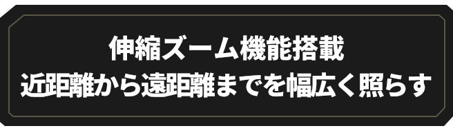 伸縮ズーム搭載することで、ライトの照射距離・範囲を自由に調整可能です。手元はもちろん遠距離もはっきりと照らしてくれました。