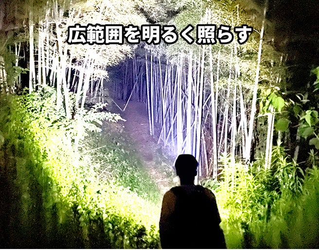 照らす範囲が広いため、周囲の状況を把握したいときに有効活用できます。