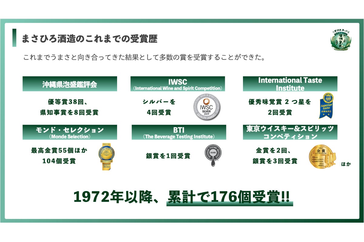 そのほかにも、沖縄初のクラフトジンである「まさひろオキナワジン」や、泡盛でも多数の受賞歴があります。