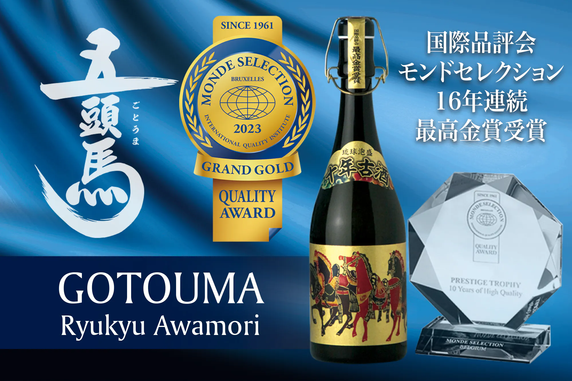 中でも、最高級の古酒をブレンドした「五頭馬(ごとうま)」は16年連続モンドコレクションで最高金賞を受賞。