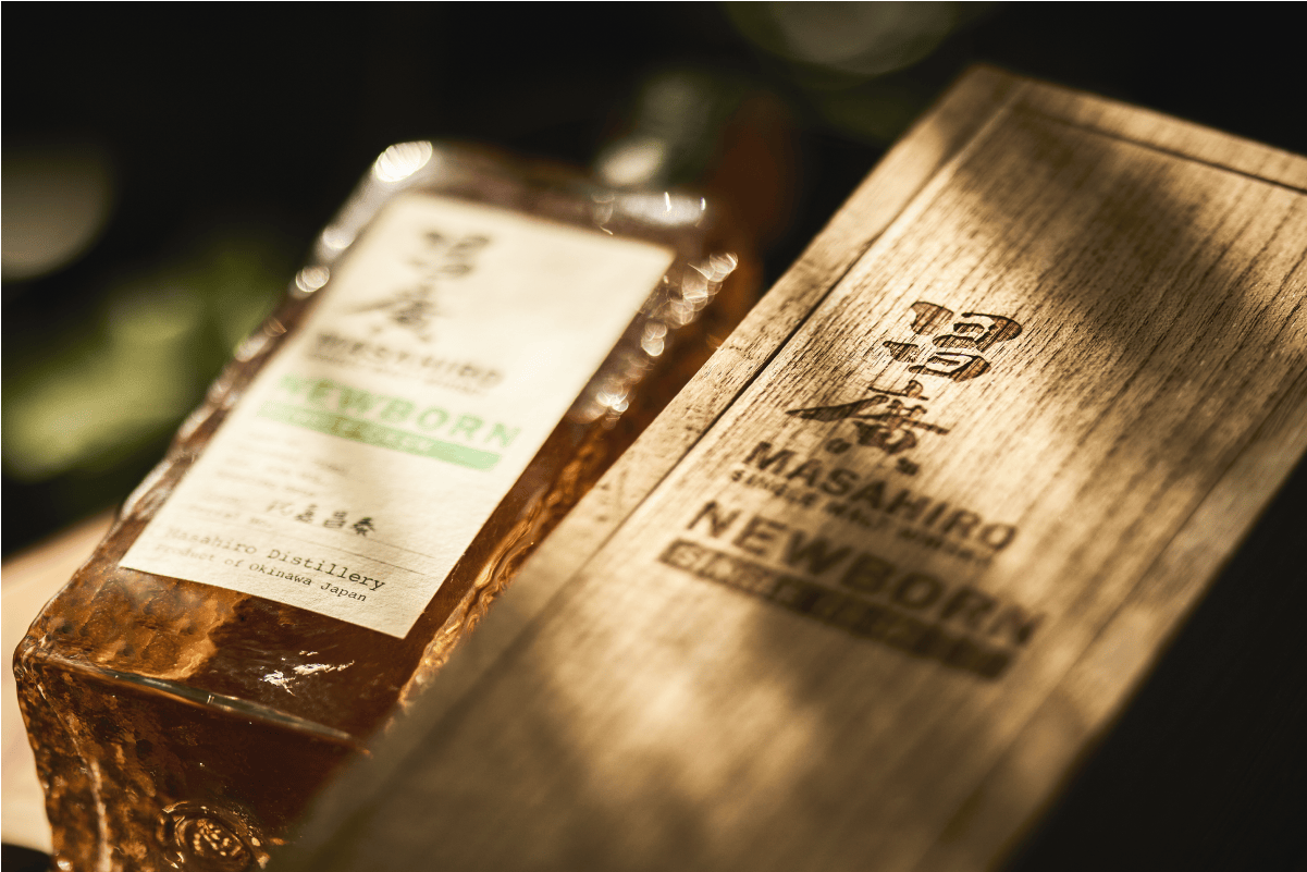 沖縄では女子が生まれるとセンダンを庭に植えて、その子が嫁ぐときに家財道具の材料として送り出したという習慣があったそうです。このあたらしく誕生したニューボーンウイスキーもそのような親心をもってお客様のもとに送り出したいという気持ちから箱の材質を決めました。