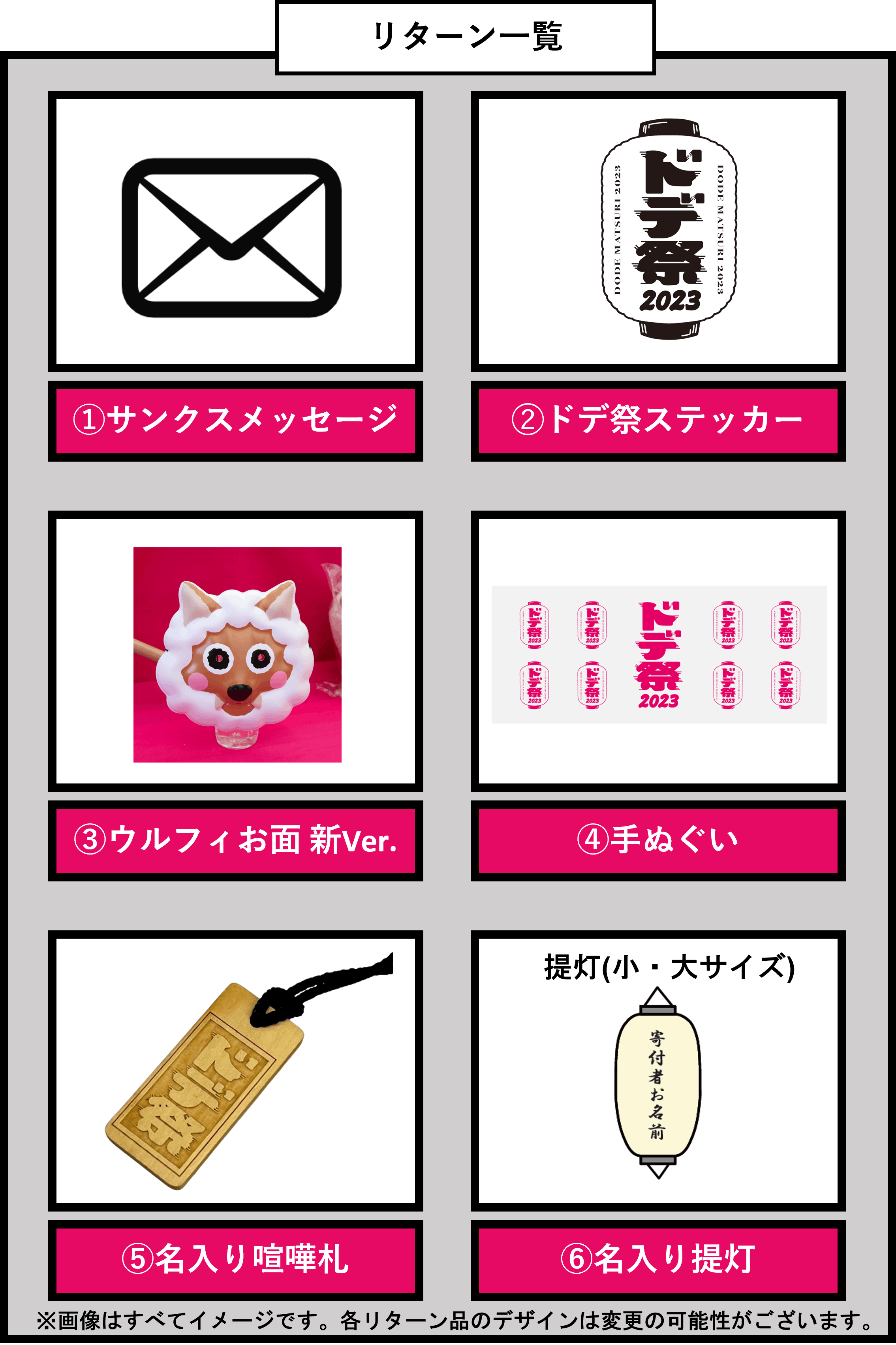 ※10,000円以上のリターンを選択した方には、「名入り喧嘩札」のみ「ドデ祭」前にお送りする予定です。