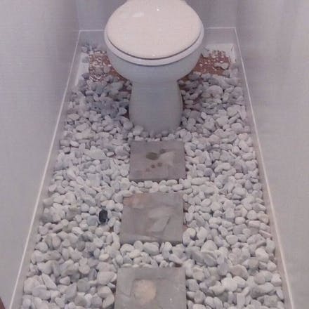 その後、庭園風のトイレにするため、石を敷き詰めました。