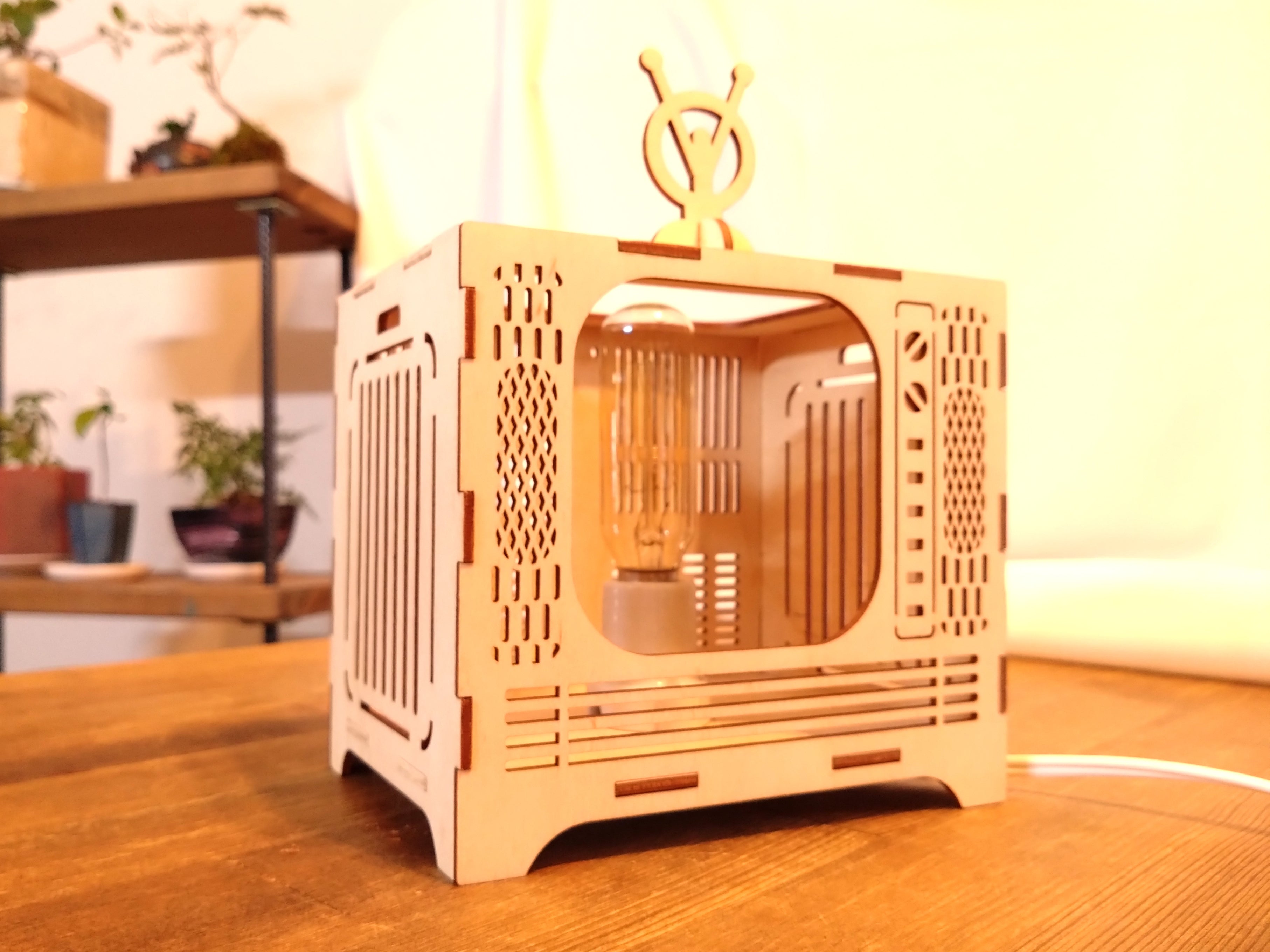 「ビンテージTV」は、現在TVの形は進化を遂げましたが、ノスタルジーを感じる昔のブラウン管TVが今思えばとても愛くるしい。そんな可愛らしいデザインをランプとして復活させてみました。アンテナも可愛く置けます。木製の出せる柔らかさと愛くるしいデザインで雰囲気のあるお部屋作りをお楽しみください。