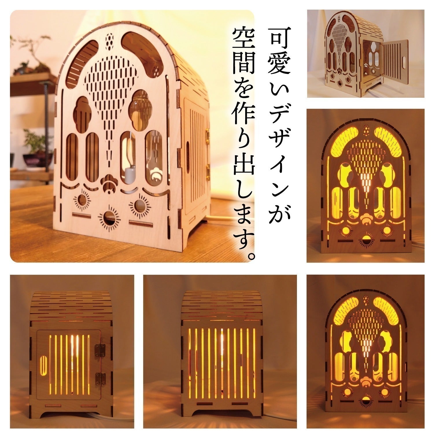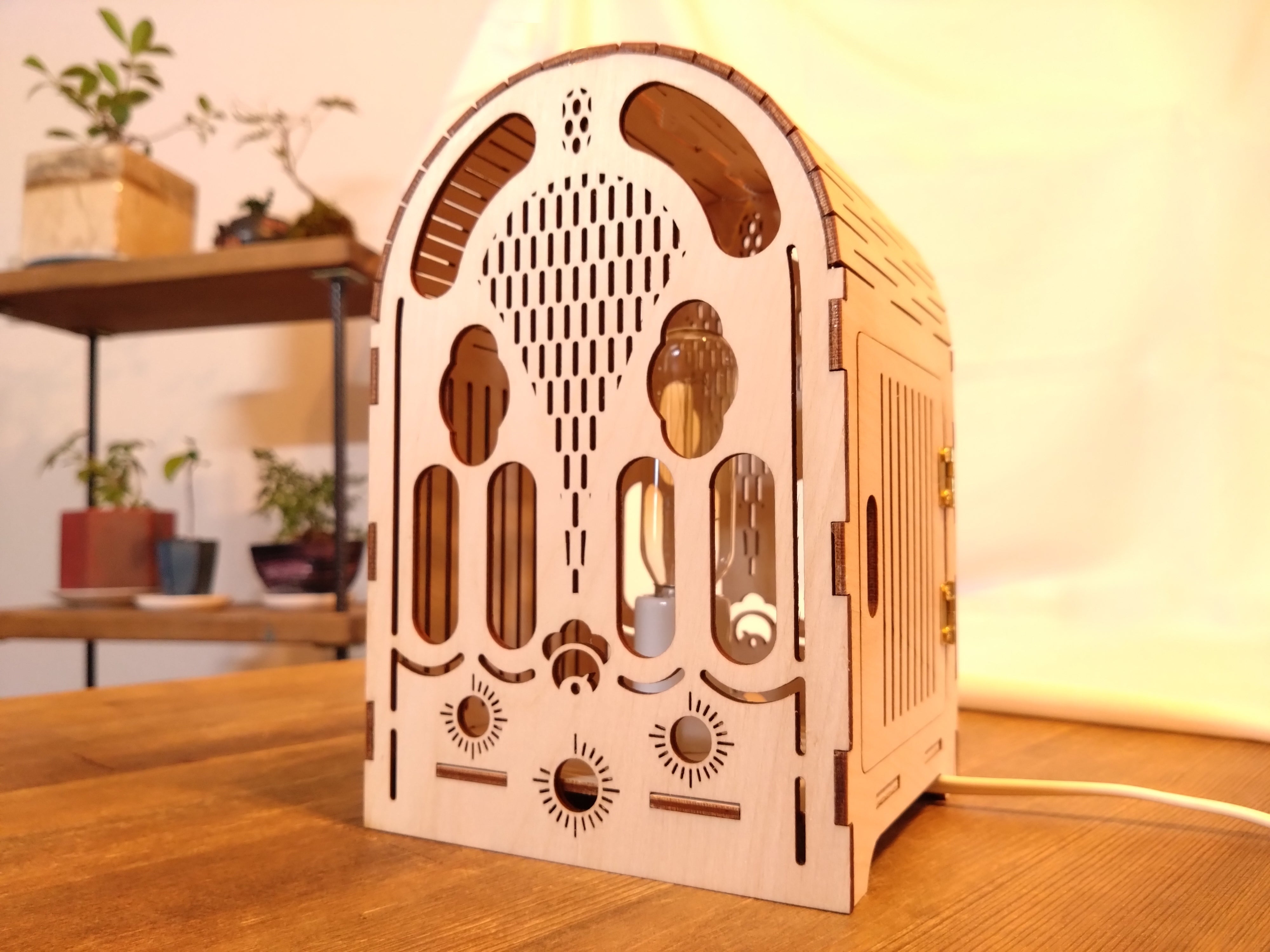 「ビンテージラジオ」は、今では見なくなったデザインの昭和感漂うラジオのデザインをランプとして復活させました。木製ならではの何とも言えない雰囲気と、明かりと組み合わせで素敵なランプになりました。きっとお部屋作りが楽しくなることと思います。