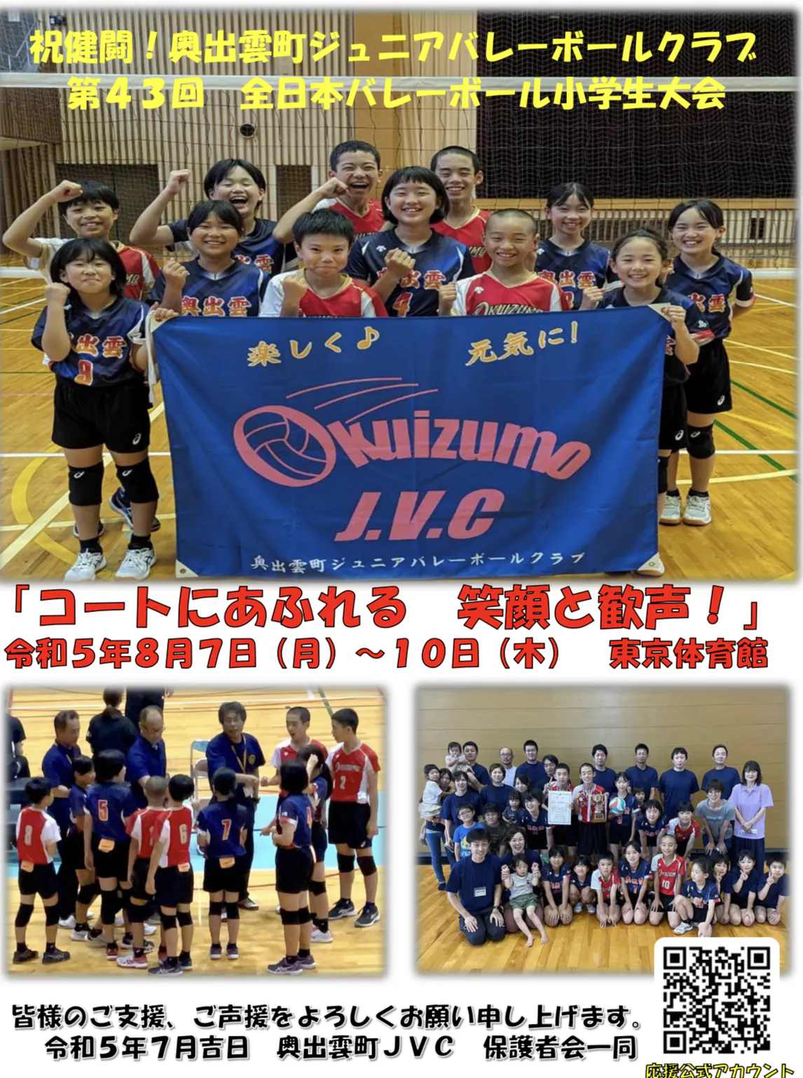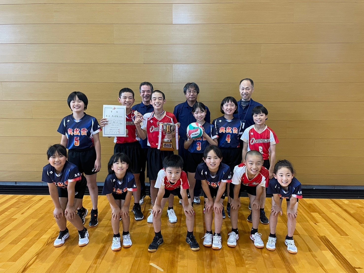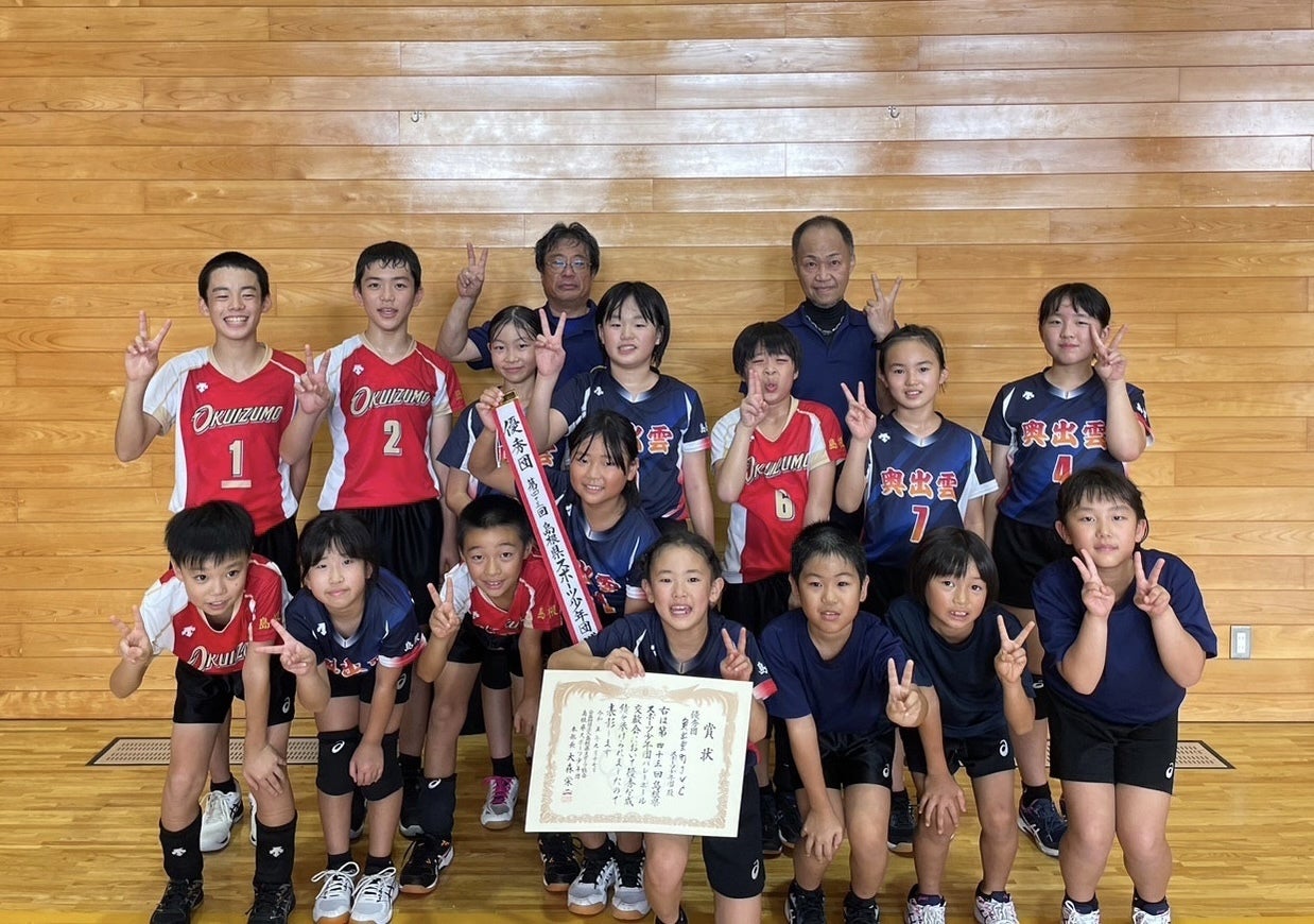 この度、第43回全日本バレーボール小学生大会島根県大会混合の部において、初優勝を果たし念願の全国大会出場権を獲得しました。