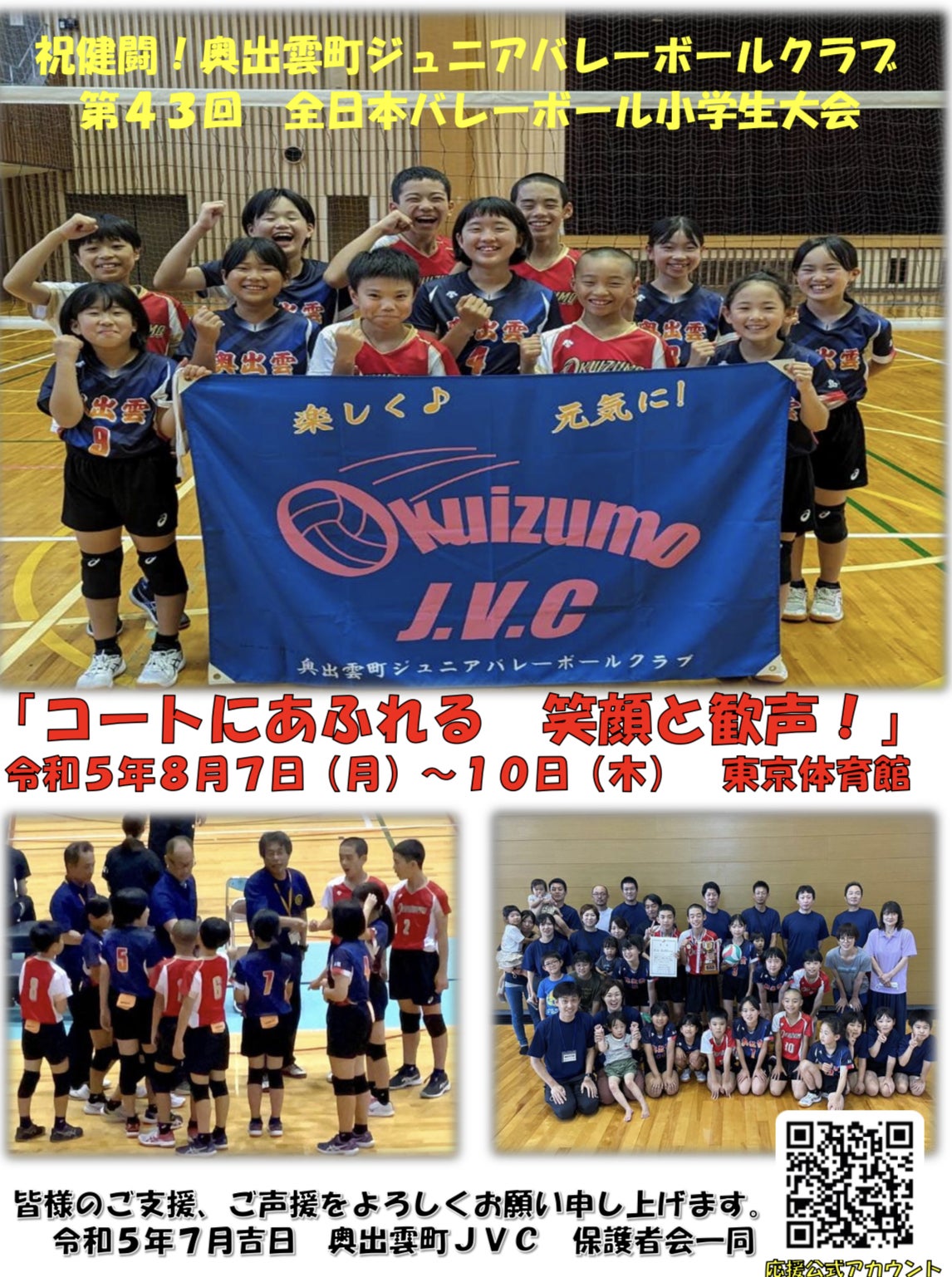 この度、第43回全日本バレーボール小学生全国大会 混合の部へ島根県代表として出場権を得ることができました。