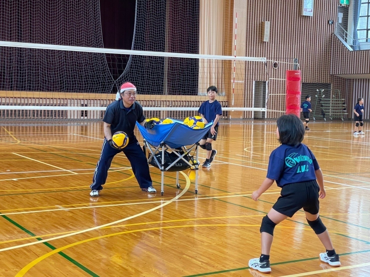町内の各小学校から集まった2年生から6年生の16名で『楽しく』『元気に』バレーボールをしています。