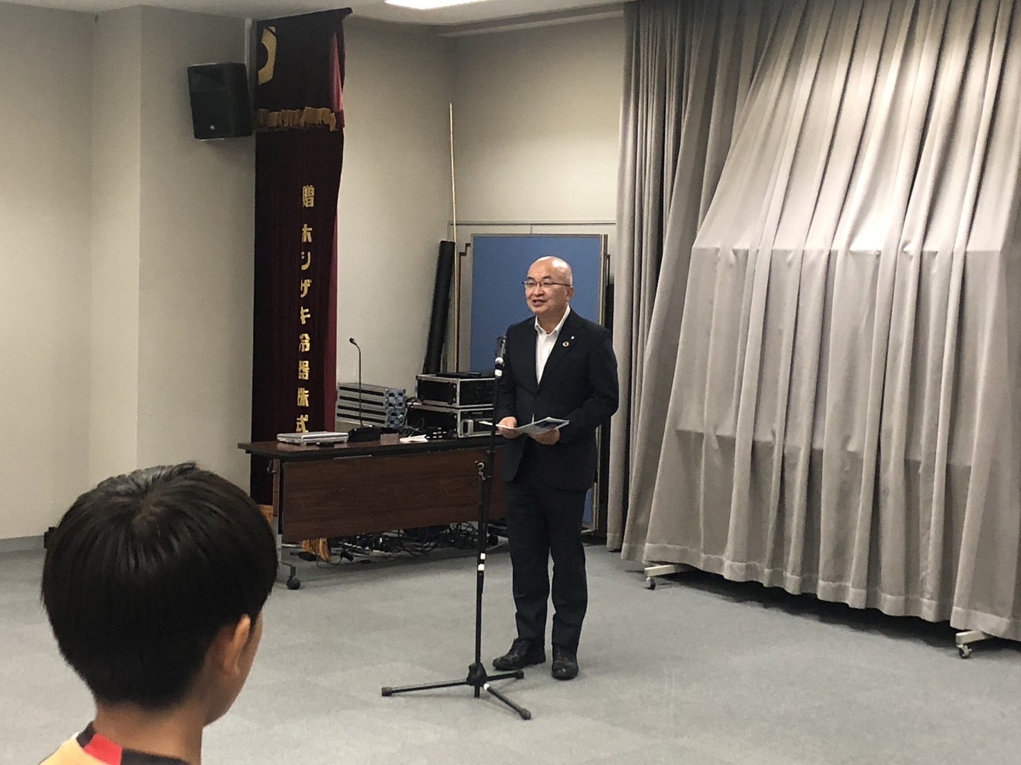 全国大会に出場する中学総体剣道、高校総体男女ホッケー、高校総体剣道、U-12全国フットサル大会と合同激励式でした。