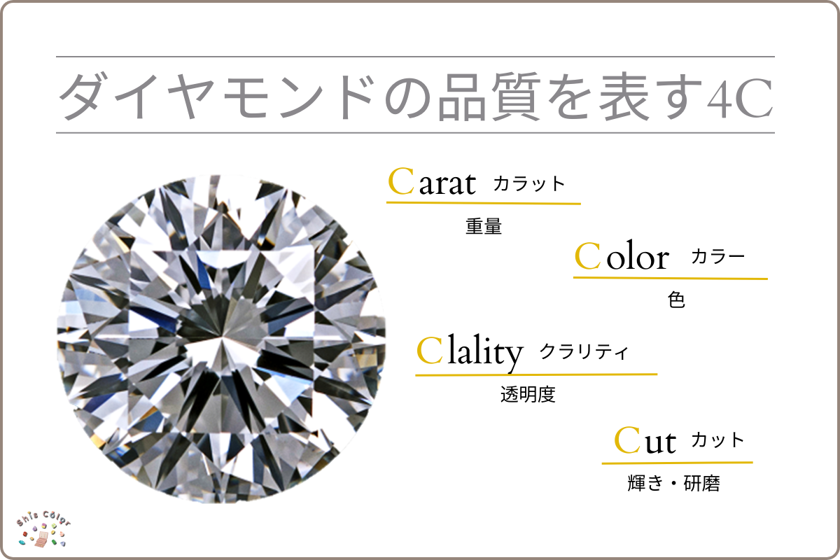 「カラット(Carat)」、「カラー(Color)」、「クラリティー(Clarity)」、「カット(Cut)」の4単語の頭文字をとって「4C」と呼ばれています。