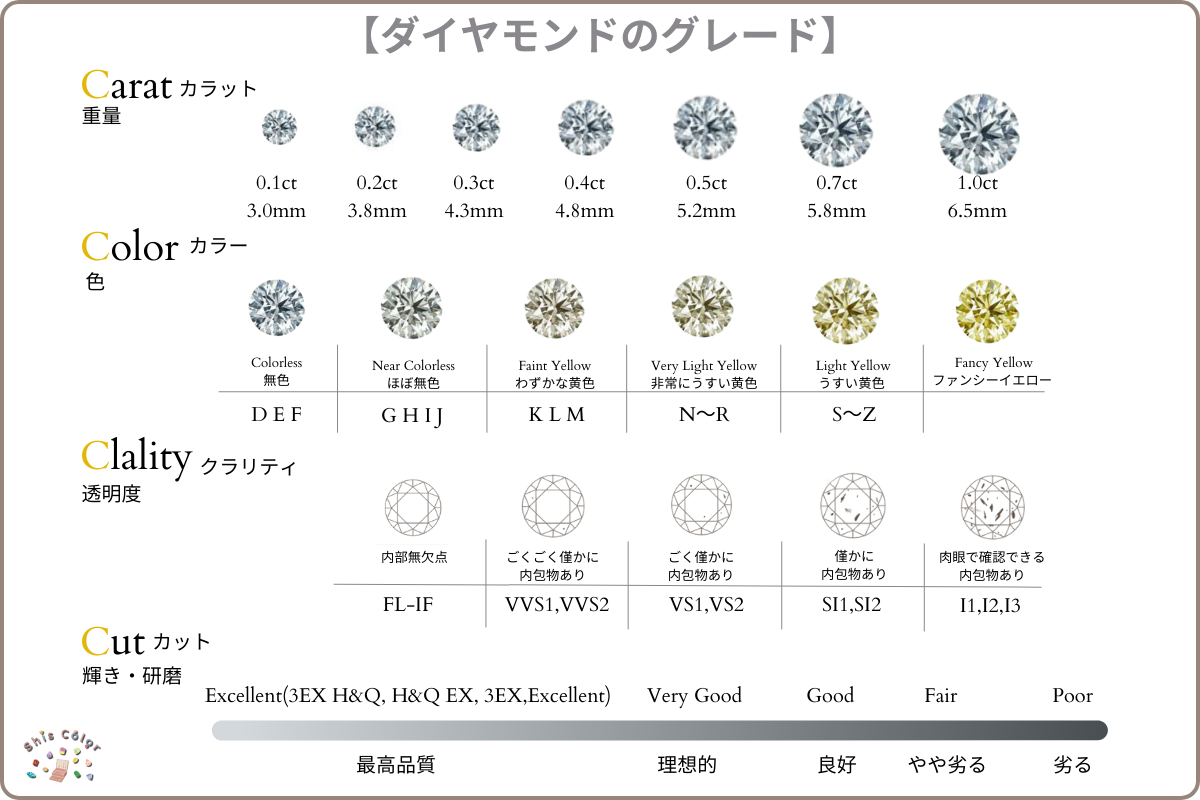 4Cとは国際的に使用されているダイヤモンドの品質を決める指標。