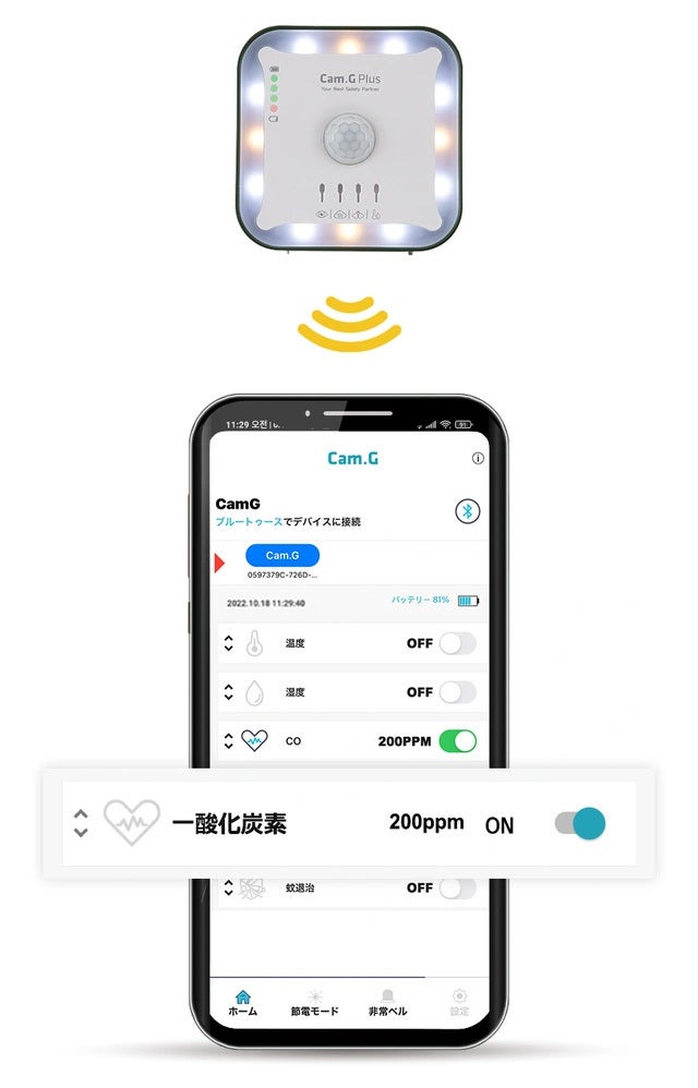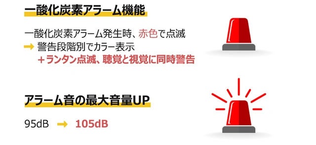 秋冬キャンで最も気になる一酸化炭素中毒。一酸化炭素測定&アラーム機能もアップグレードしています。