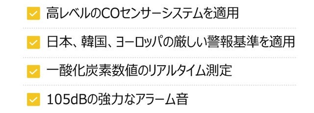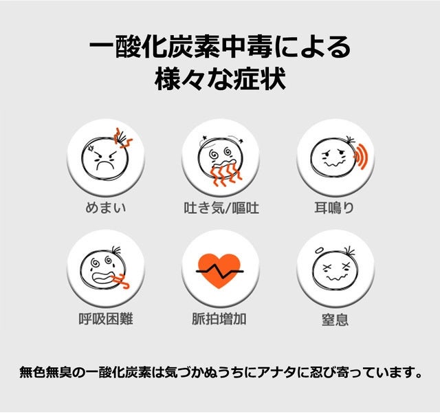 <沈黙のキラー>、一酸化炭素をリアルタイムでモニターして、基準を超える濃度を感知したら警報が発生します!