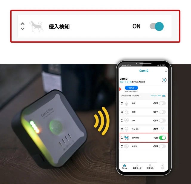 「Cam.g PLUS v2」はセンサーをONにして置いておくだけ!