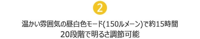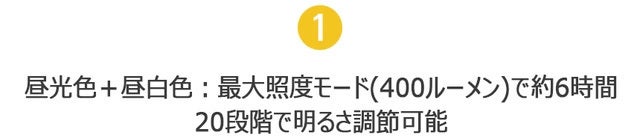 ※モード1、2については明るさを20段階で調整可能なため、連続使用時間に差があります。