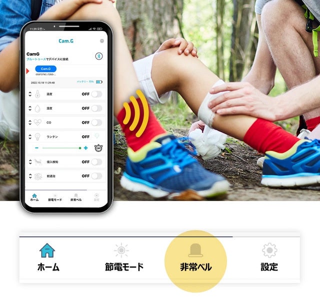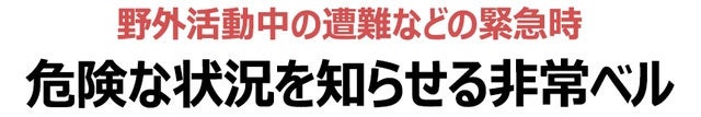 非常時はもちろんのこと遭難時にも、ホイッスルのように自分の位置を知らせたい時、簡単アプリ操作で非常ベルを鳴らし、音で遭難信号を送ることができます。