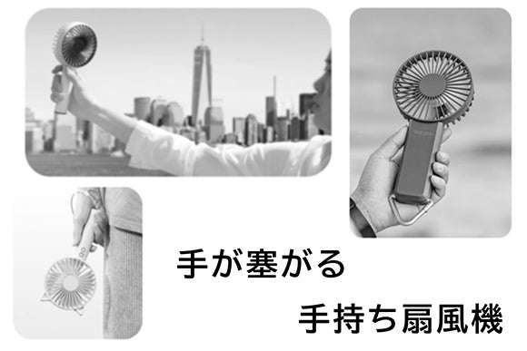 盛夏での屋外作業・外出の場合、扇や小さな扇風機などを持ちながら作業するのは不便で、逆に疲れて暑くなります。