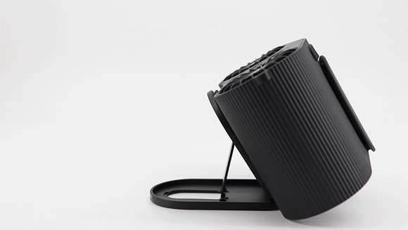 腰や首にかける以外にも、スタンドと組み合わせて卓上型扇風機に早変わり。