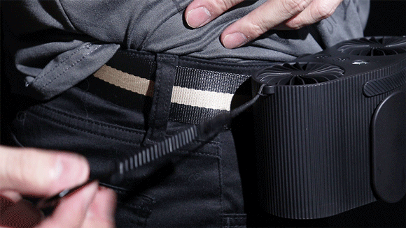 「WalkFan3.0」は腰や首にかけるだけで、仕事をしながら涼しい風を浴びることができます。