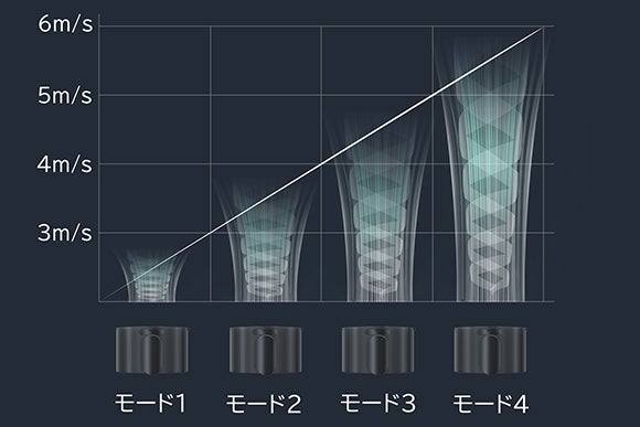 ※デュアルファン構造のため、モード1の風量でも日常使用に十分です。