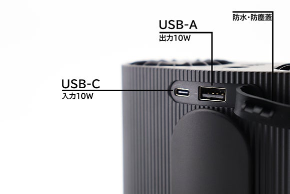 「WalkFan3.0」の側面にスマホなどを急速に充電するUSBポートも完備。バッテーリー容量は9000mAhがあります。屋外作業・外出の時、スマホのバッテリーが切れる心配がありません。