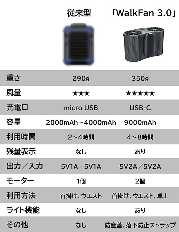 一昨年と昨年の夏の「 WalkFan」、「 WalkFan2.0」に続き、今年は前2作のいいところを取り入れ、より軽く、強い最新作の「WalkFan3.0」を紹介。