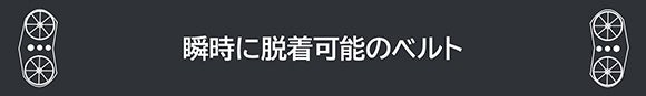 専用ベルトと合わせて、作業中に落ちないように両側から固定するような仕組みになっています。また、ベルトを回すだけで本体の位置を調整可能。