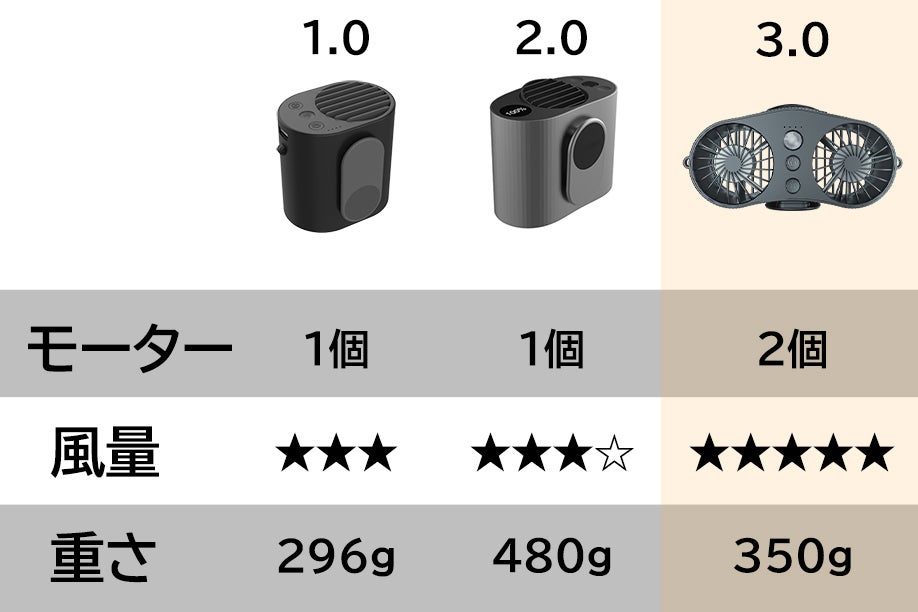 「WalkFan3.0」は前作より風量が強い上、より軽くなり、持ち運びに便利です。