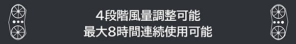 ■風量4段階調整可能、最大8時間連続使用可能