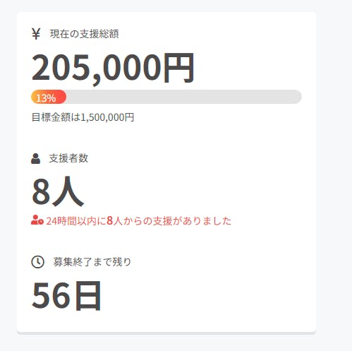 ご支援ありがとうございます!!公開1日目に20万円を達成しました!