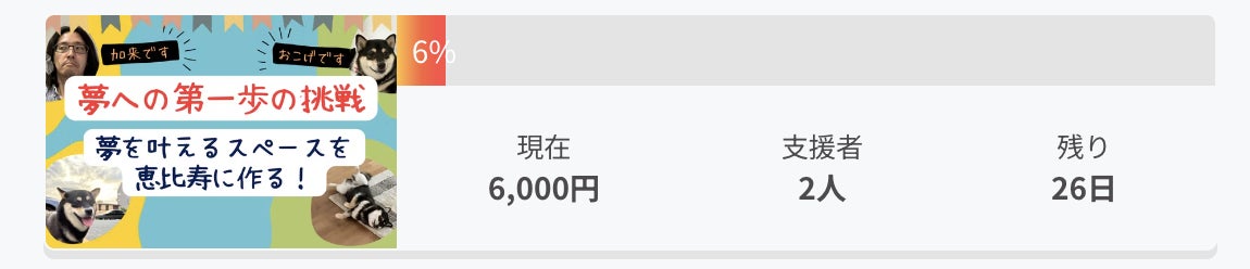 まだ終了まで26日ありますが開始5日で6%の進捗なのでこの活動報告を見ている方々はぜひ拡散のご協力よろしくお願いいたします!